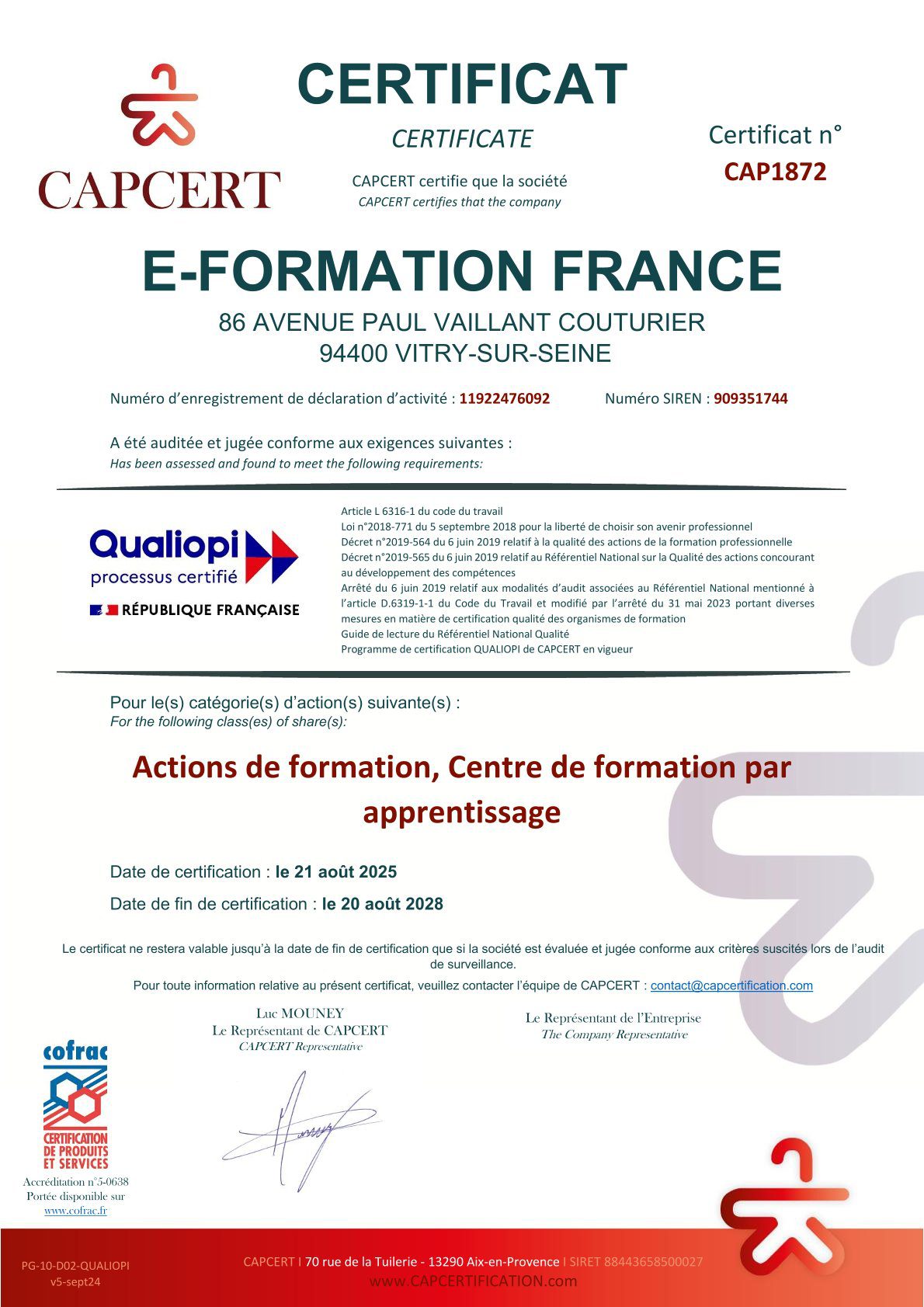 Notre mission est simple : vous permettre d’obtenir votre NDA, votre certification Qualiopi et votre référencement EDOF rapidement et du premier coup.